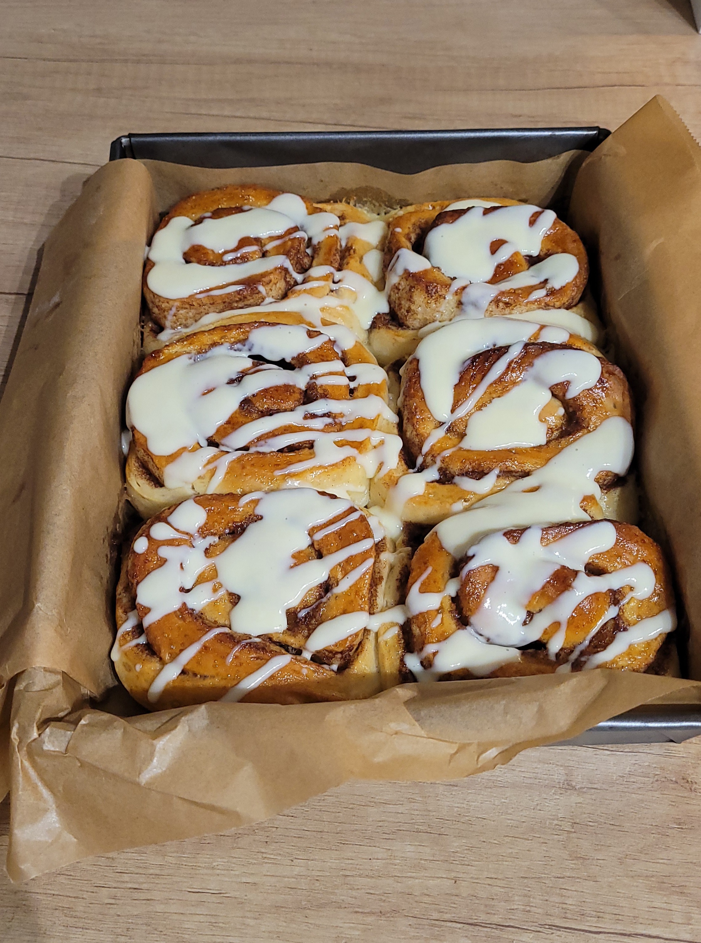 13. Upieczone cynamonki studzimy kilka minut, a następnie pokrywamy polewą.