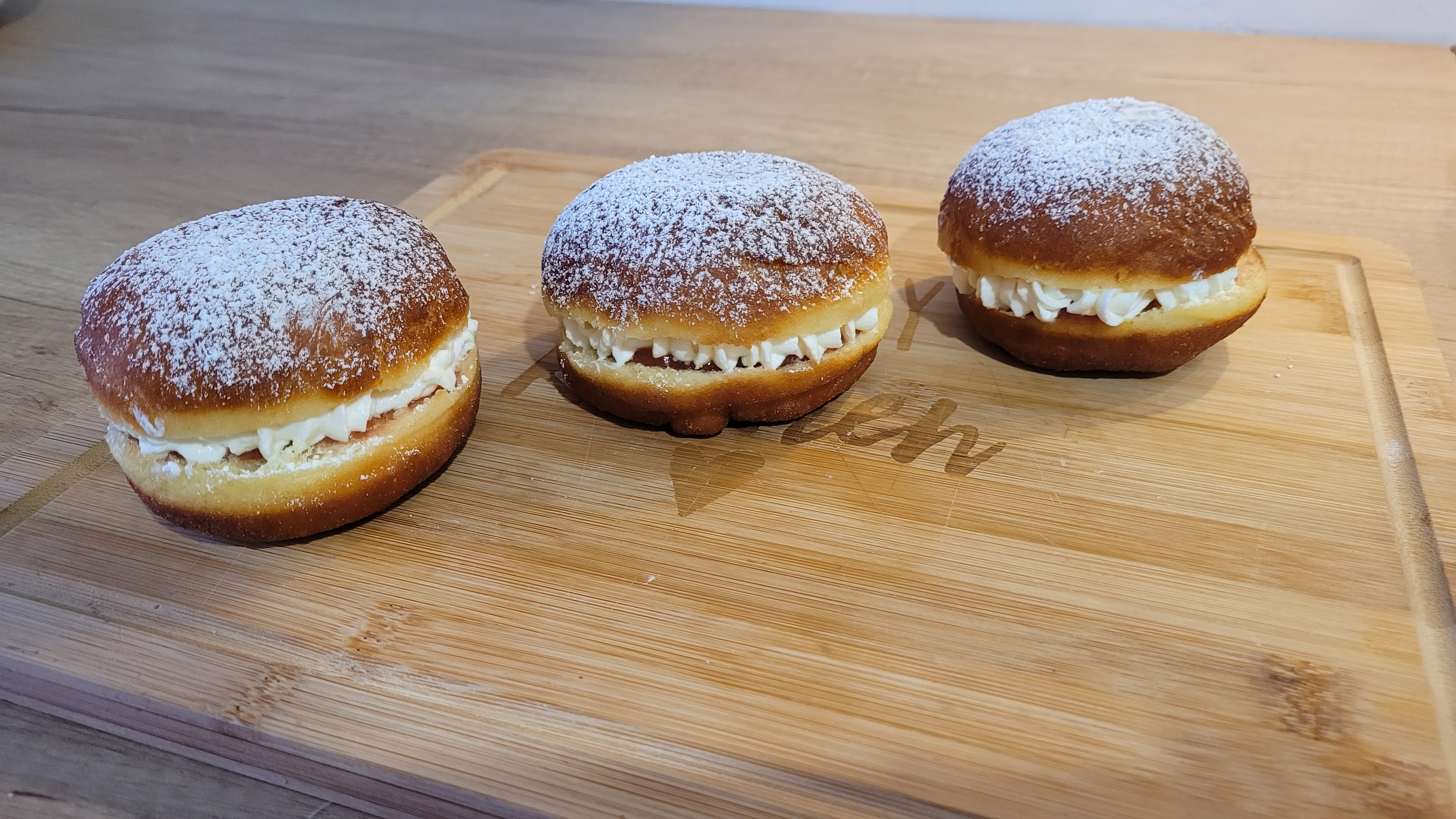 10.Usmażone pączki przekrawamy na pół i czekamy do ich całkowitego wystudzenia.