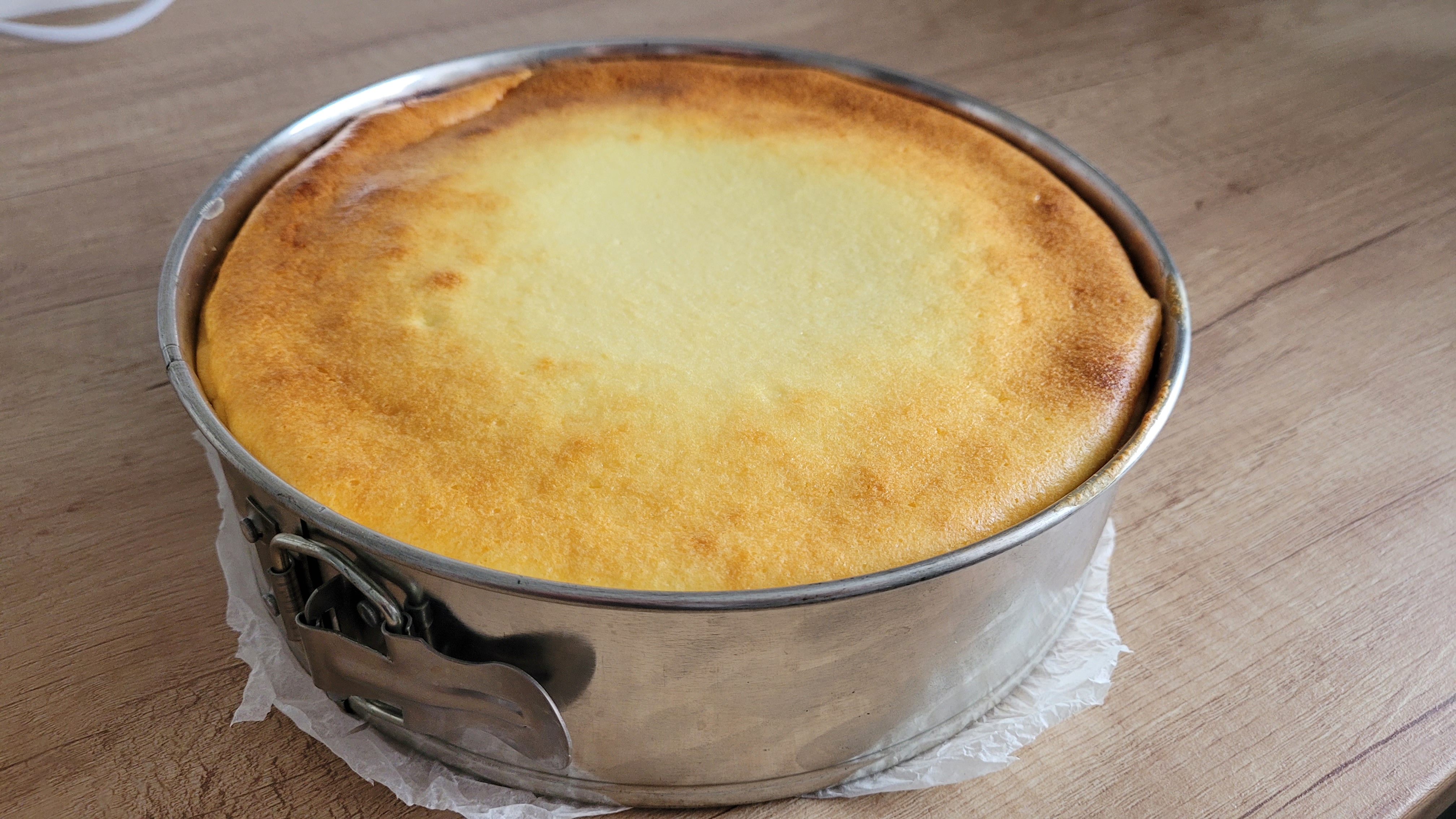 1. Białka oddzielamy od żółtek. Następnie żółtka przekładamy do misy miksera, dodajemy cukier i ubijamy na wysokich obrotach aż masa stanie się jasna i puszysta (mniej więcej 5-7 minut).2. Gdy żółtka podwoją swoją objętość, zmniejszamy obroty na najniższe i łyżka po łyżce dodajemy ser, wlewamy śmietankę i wsypujemy budyń. Masę mieszamy tylko do czasu połączenia się składników.3. W oddzielnej misce ubijamy białka ze szczyptą soli na sztywną pianę.4. Ubitą pianę łączymy z masą serową w trzech turach. Mieszamy delikatnie szpatułką.5. Gotową masę wylewamy na przygotowany wcześniej spód6. Sernik pieczemy w piekarniku nagrzanym do 160* (góra-dół) przez 1godz 15min. Po tym czasie wyłączamy piekarnik. Sernik studzimy w uchylonym piekarniku.