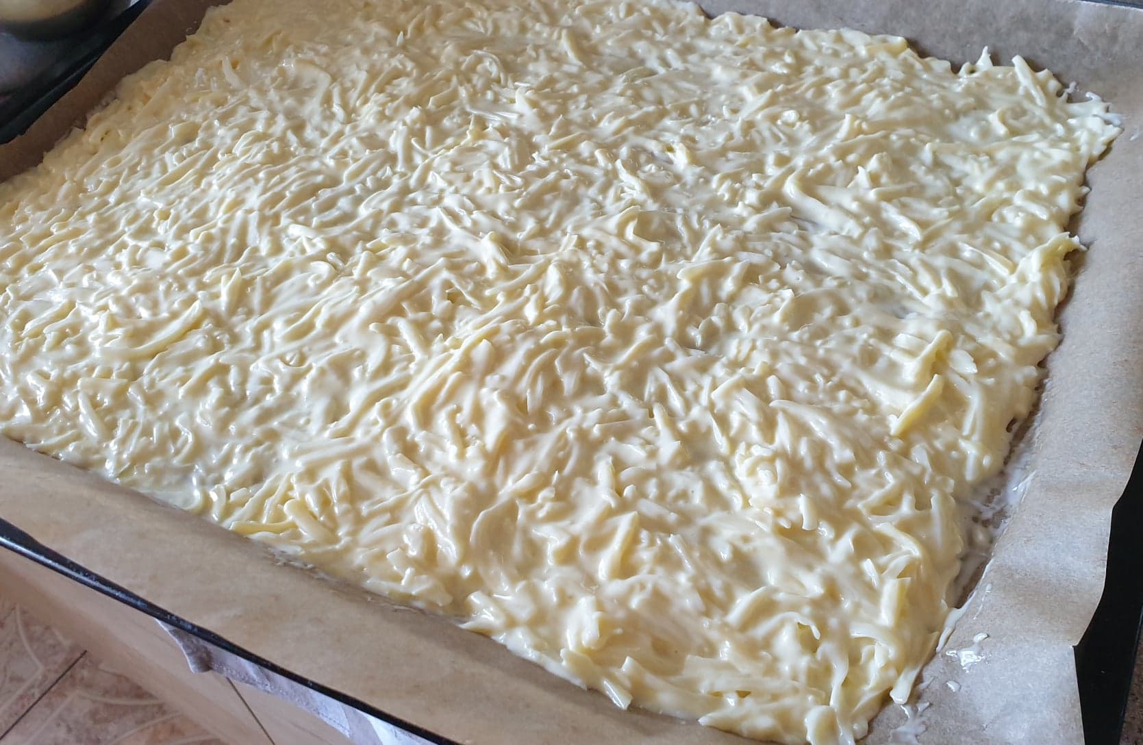W miseczce rozkłócamy jajka, dodajemy majonez i mieszamy do uzyskania jednolitej konsystencji, dodajemy ser i mieszamy do połączenia składników. Przygotowaną mieszankę wykładamy na blachę od piekarnika. wyłożoną papierem do pieczenia. Ser pieczemy w piekarniku nagrzanym do 180 stopni przez 20 minut, do zezłocenia (Grzałka góra-dół)
