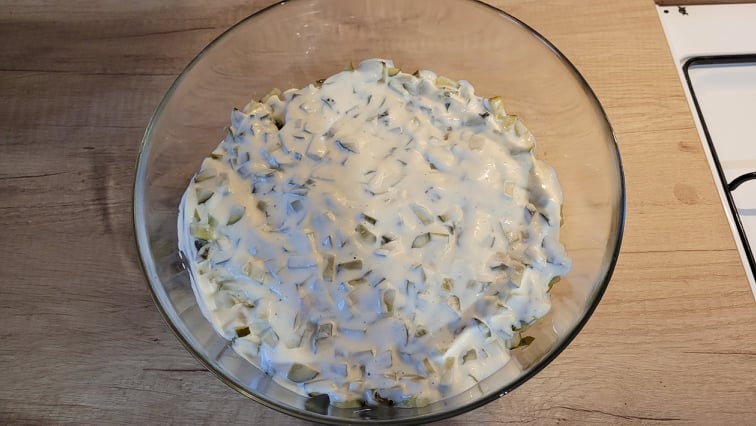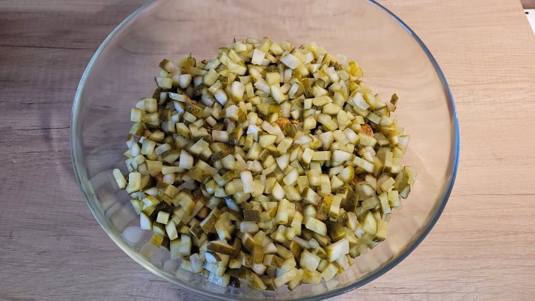 5. Ogórki konserwowe kroimy w drobną kostkę.